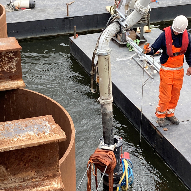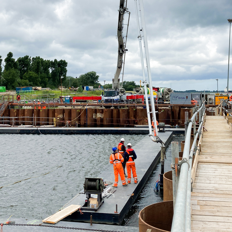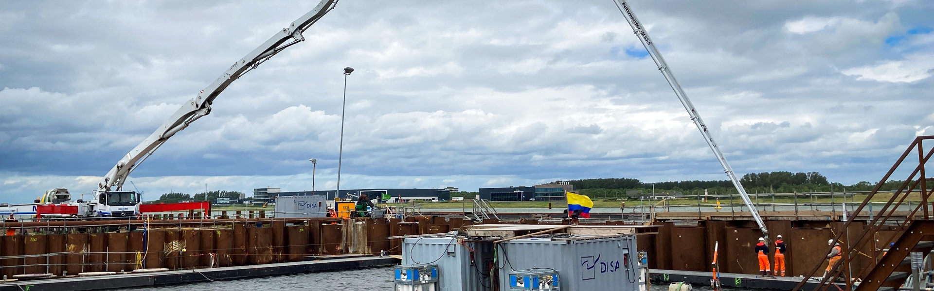 Na maanden van noeste arbeid is het zover: de eerste onderwaterbetonstort van de Maasdeltatunnel op het project A24 Blankenburgverbinding.