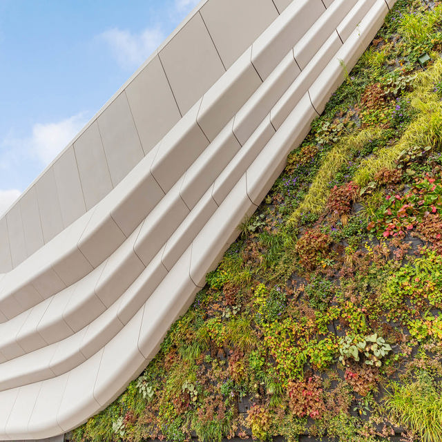 Mall of the Netherlands bestaat uit 117.000 m2 verhuurbaar oppervlak, met 280 winkels, restaurants en recreatiebestemingen. Binnen het project zorgden we aan de noord- en zuidzijde voor de karakteristieke daken, de vloeren, de gevels en het betonwerk. Meestal is beton gewapend met staal, maar voor deze gevelelementen kiezen we voor beton waar kleine vezels in zijn gestort. Dat zorgt voor een dunne en relatief lichte betonnen gevel, zonder dat het op kwaliteit moet inleveren.