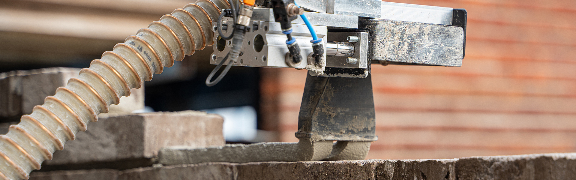 Mortel aanbrengen, stenen op maat zagen en stenen op zijn plek leggen: de gloednieuwe metselrobot maakt heel wat vlieguren. De ontwikkelingen? Die gaan hard. Inmiddels is voldoende kennis en ervaring opgedaan en is de robot klaar voor de bouwplaats.