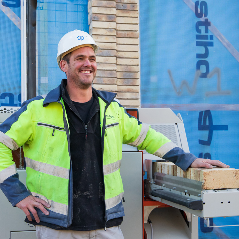 Na maanden testen en verbeteren is de productieversie gereed. Metselaar Bas Meerwijk van Heddes Bouw & Ontwikkeling, onderdeel van Ballast Nedam, kent de robot inmiddels door en door. Hij metselde al ruim 60.000 stenen met deze nieuwe, moderne collega. En dat gebeurt voornamelijk in het Noord-Hollandse Berkhout, op de werf van Heddes. Hier heeft Bas alle ruimte om te testen en verbeteren.