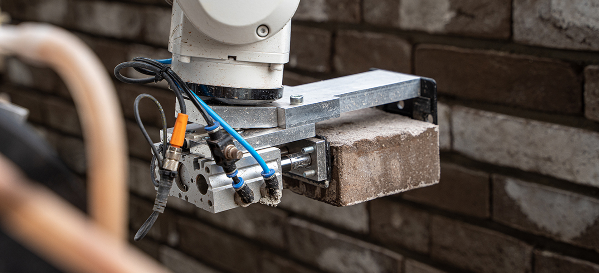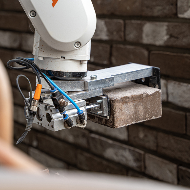 - In mei 2022 maakten we bekend dat we starten met een nieuwe metselrobot. Deze robot werkt met écht metselwerk, in plaats van de steenstrips waar de meeste robots mee werken.