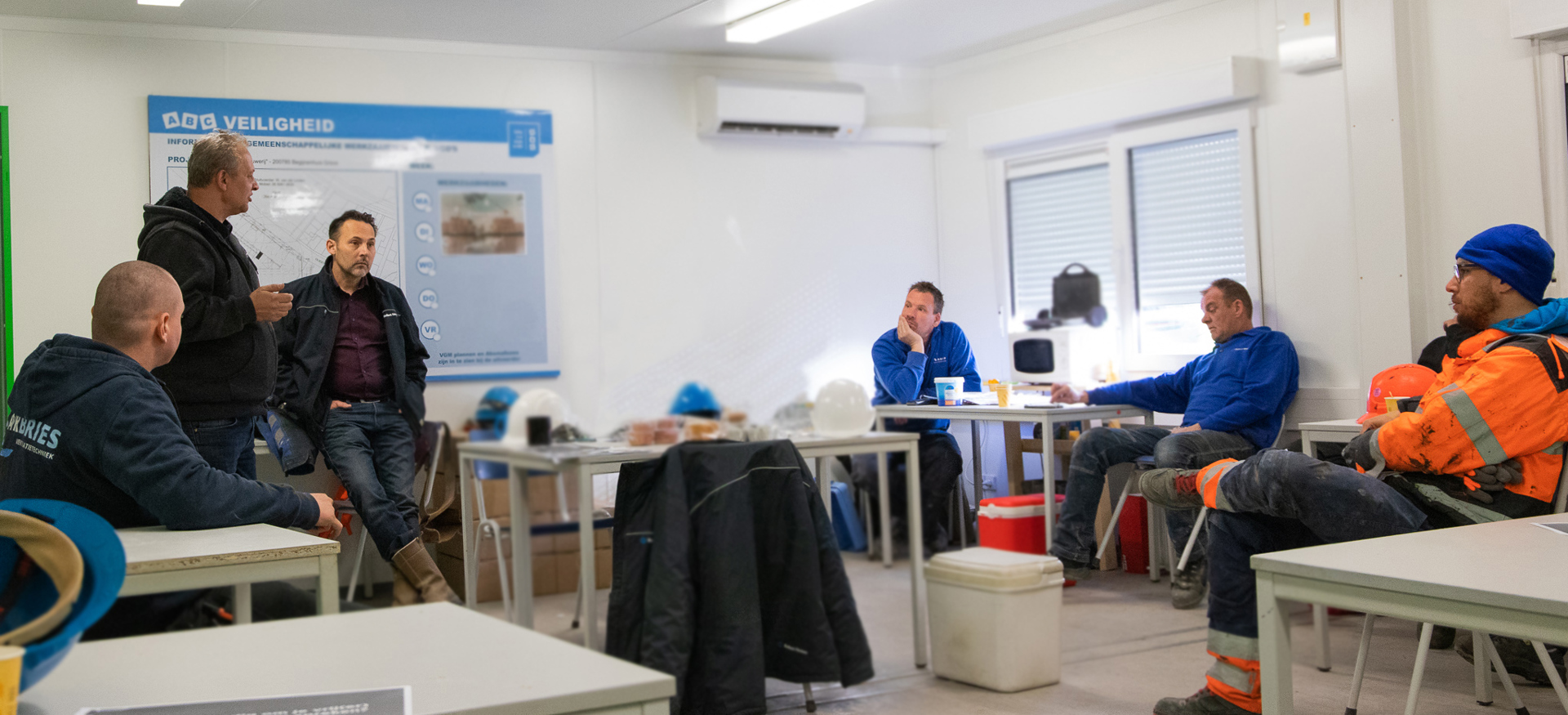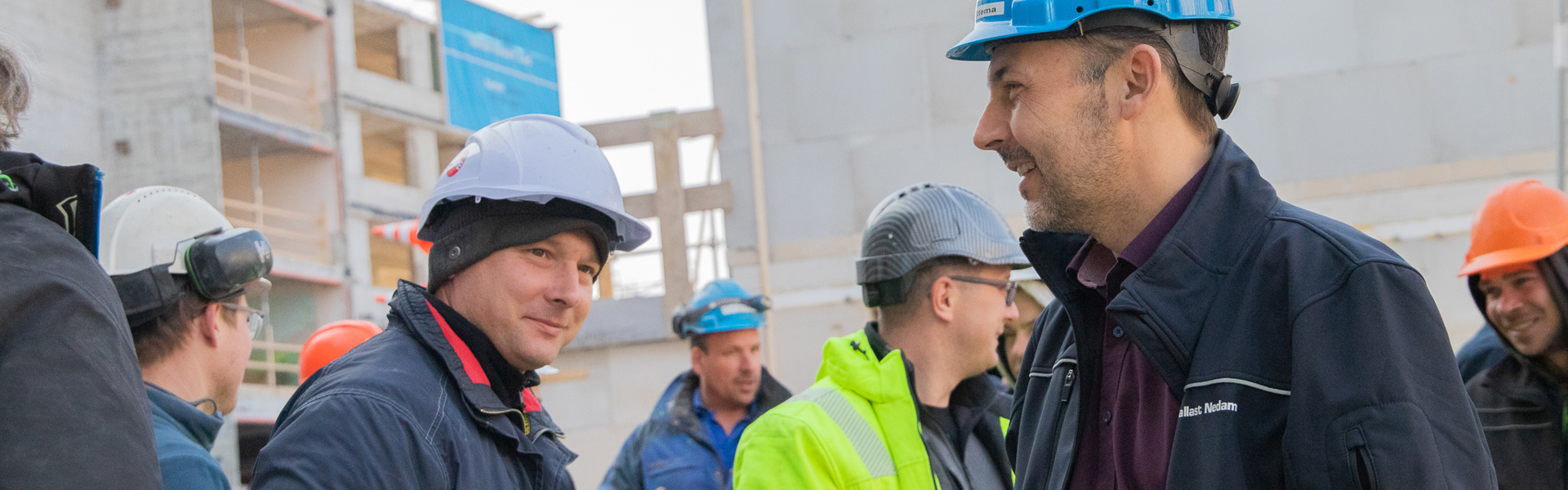 Op woningbouwproject De Brouwerij in Grave komen de gesprekken al snel los. Wat maakt dat we in de praktijk soms in onveilige situaties terecht komen? Waarom vinden we het weleens lastig om anderen aan te spreken op onveilig gedrag? En doe je er zelf wel écht alles aan om veilig te werken?