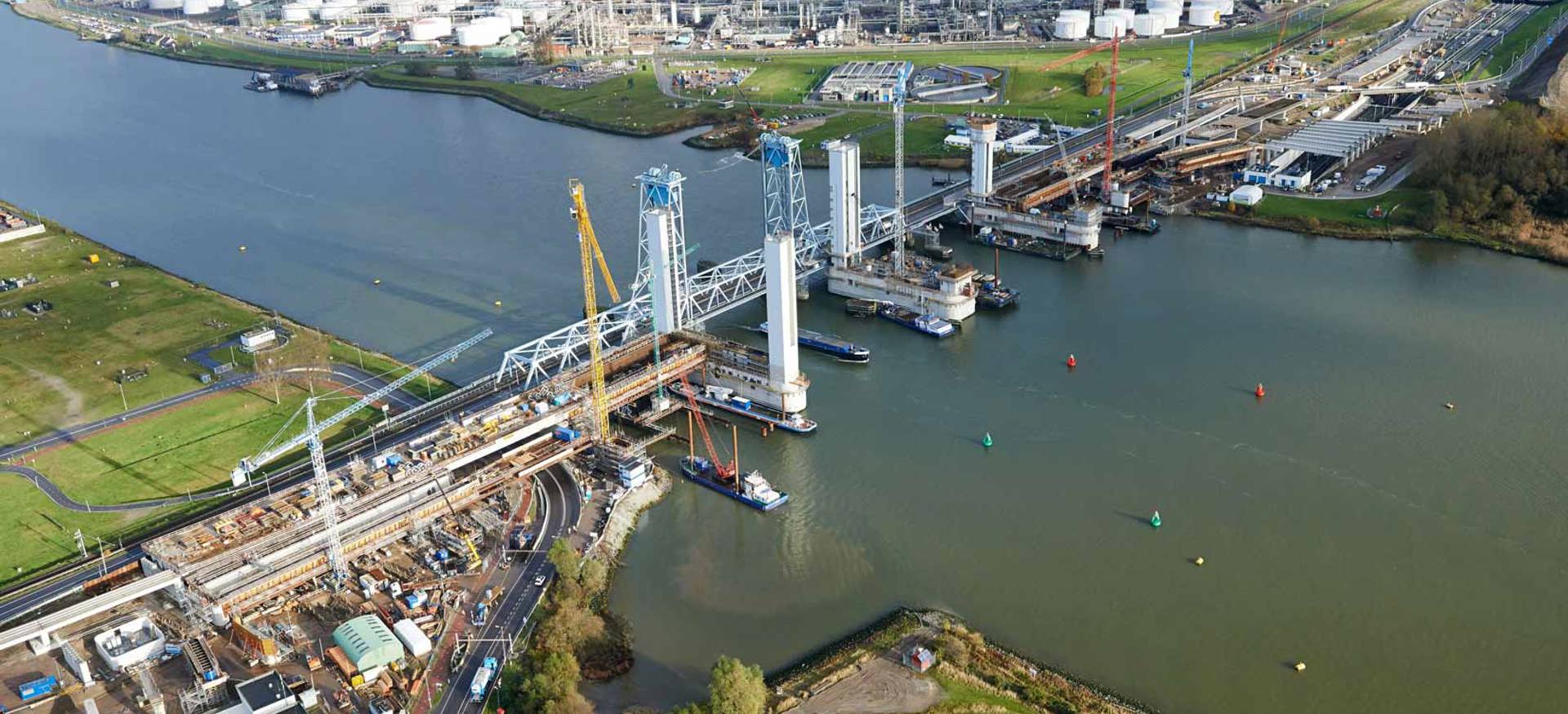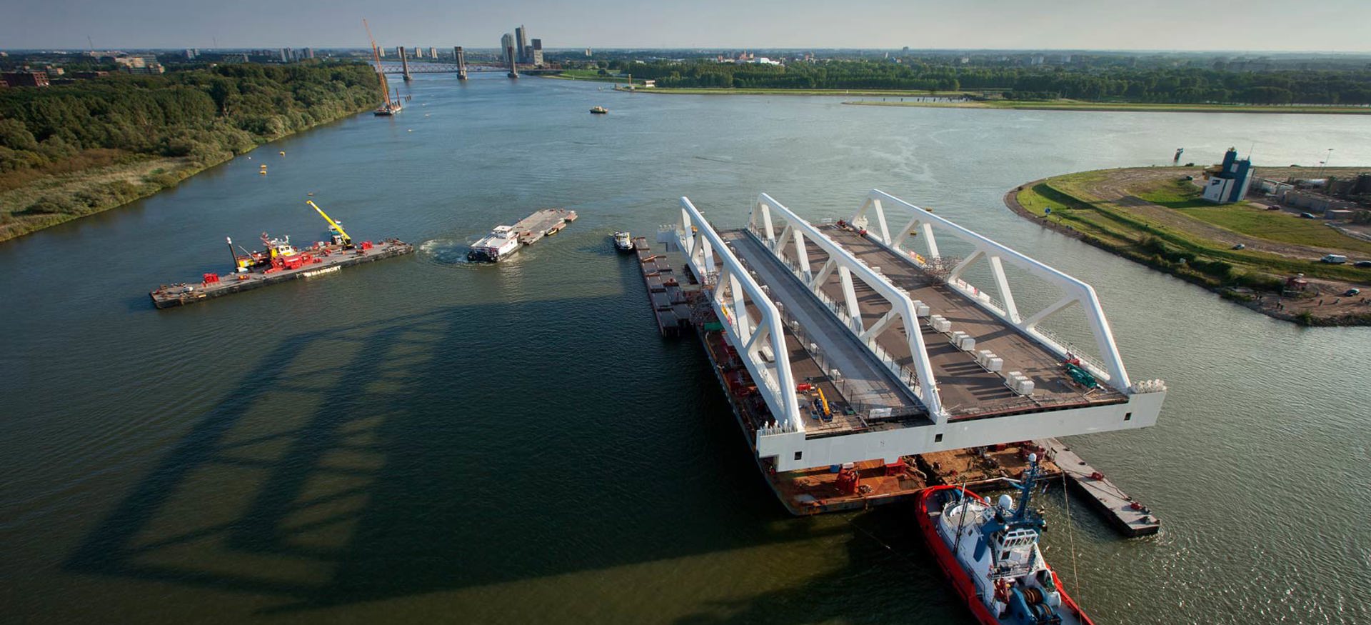 In Duitsland zijn de losse onderdelen van de twee brugdekken zo geproduceerd, dat ze over de weg vervoerd konden worden. In totaal zijn de onderdelen in 220 transporten per vrachtwagen naar Schiedam gebracht. Op de werf bij Mammoet zijn de dekken tegelijk gemonteerd om in te varen en te plaatsen. De aanpak om in Duitsland te produceren en vervolgens vlakbij de locatie van de brug te monteren is uniek.