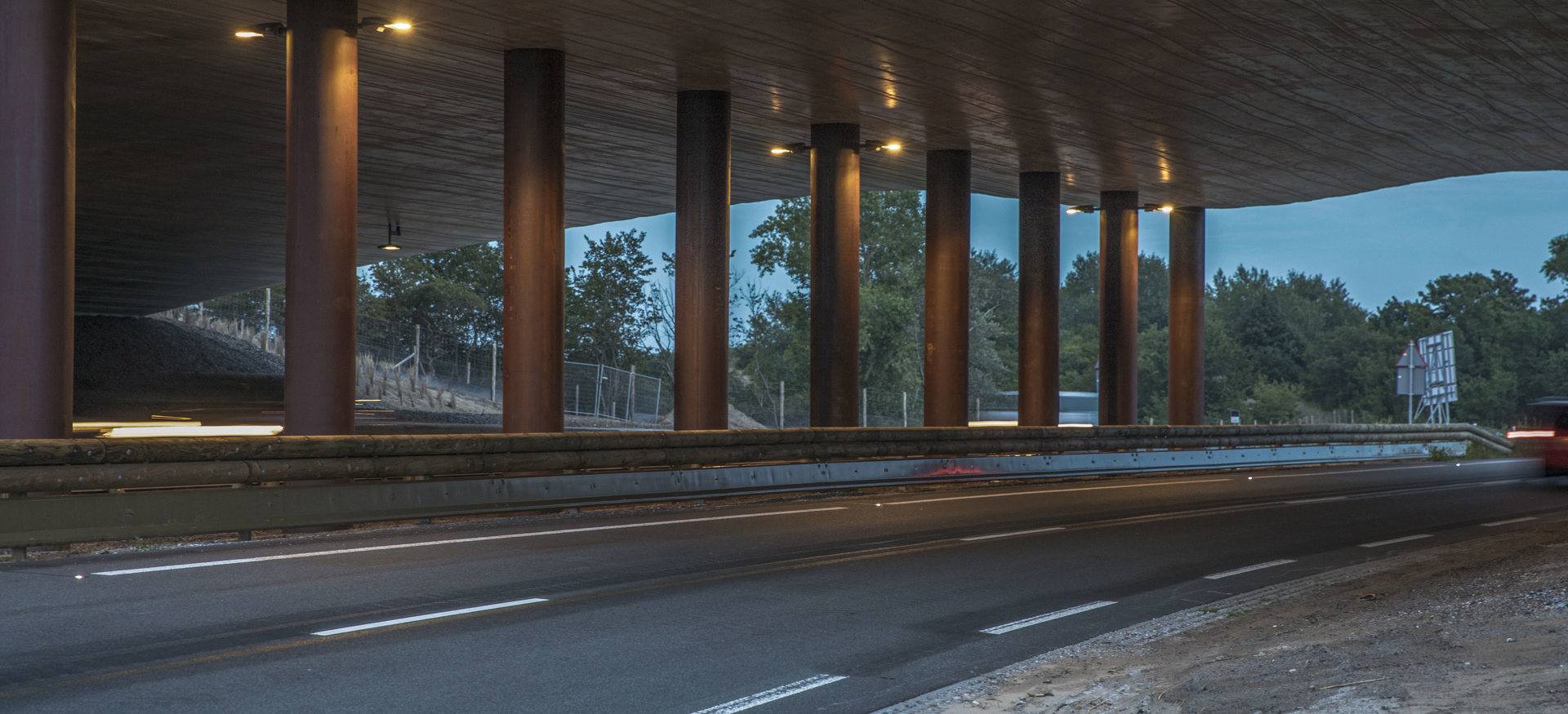 Zowel het ontwerp als de manier van bouwen kennen unieke kenmerken. Als je onder ‘de zeemeeuw’ doorrijdt, zie je bijvoorbeeld een prachtig geribbeld patroon in het beton. Dit doet denken aan ‘‘een strandvlakte waarop wind en water hebben ingewerkt”. Het is een monnikenwerk volgens de projectleider, maar met geweldig resultaat.