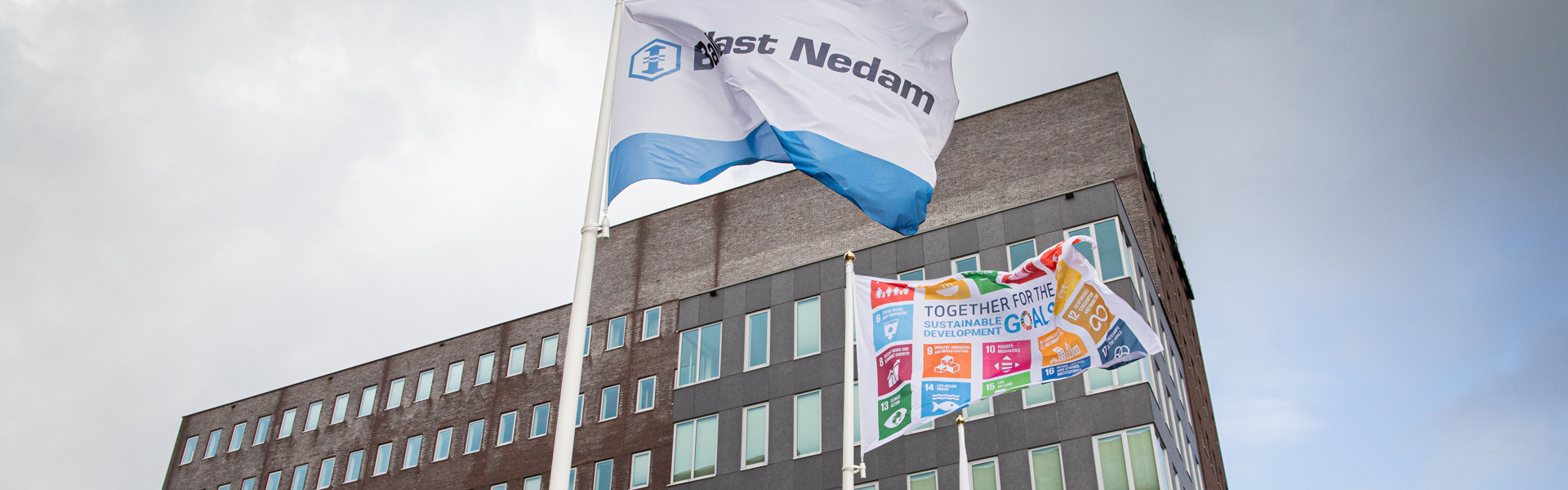 Vanaf vandaag wappert de vlag van de Sustainable Development Goals op het hoofdkantoor van Ballast Nedam in Nieuwegein. Deze doelen geven ons een belangrijke richting om als bedrijf maatschappelijk verantwoord te acteren. De komende tijd werken we daarom volop aan acties die bijdragen aan de zeventien klimaatdoelen.