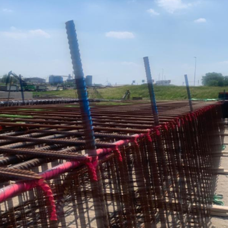 Aan iedere wapeningskorf bevestigen we meerdere signaalstekken, waarmee we de uiteindelijke positie van de korven bepalen. Deze signaalstekken, ook wel bekend als staven die bestaan uit wapeningsijzer, blijven na het aanbrengen van het onderwaterbeton boven de betonvloer uitsteken.