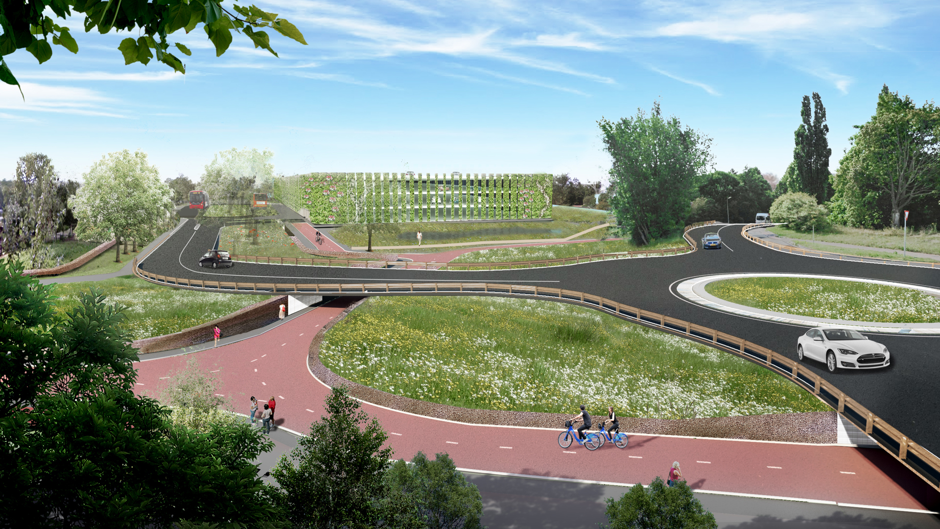 “Ontwikkel het mooiste en groenste transferium van Nederland, met zo min mogelijk overlast”, vroeg de gemeente 's-Hertogenbosch ons. Inclusief verbetering en aanleg van de infrastructuur, zoals een kruispunt, rotonde en extra fietstunnels. Een bonte stoet aan verkeersdeelnemers gaat namelijk gebruikmaken van dit nieuwe knooppunt: bezoekers van het Jeroen Bosch Ziekenhuis, winkelpubliek, fietsers en wandelaars richting natuurgebied De Gement.