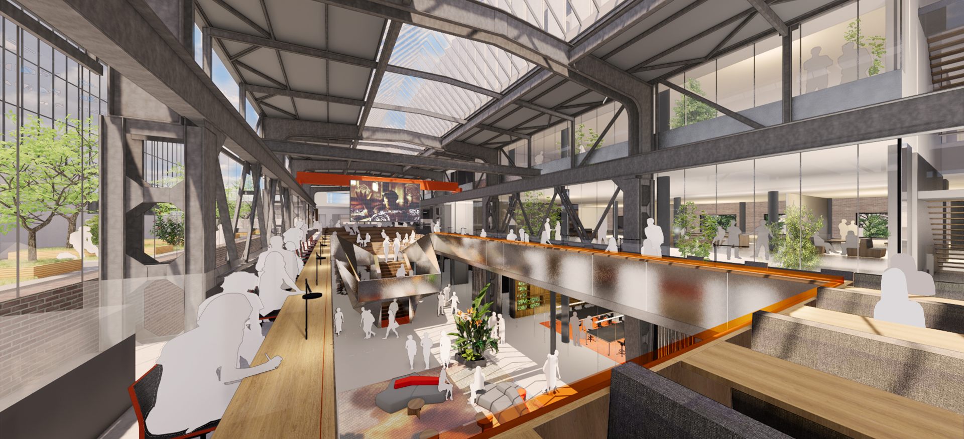 Mindlabs wordt een zusje voor LocHal, maar dan net even anders. In opdracht van de gemeente Tilburg en Fontys Hogescholen realiseren we een plek die volledig aansluit bij onze tijd en de industriële parels van Tilburg een tweede leven geeft. Een grote uitdaging, omdat we een bestaand gebouw transformeren en dit combineren met nieuwbouw. Van de al bestaande stalen spanten van Hal 70 maken we het hart van MindLabs. Naast die hal verrijst, grenzend aan een binnentuin, een transparant vormgegeven nieuwbouw met alle ruimte voor kantoren, onderwijs en media. Als laatste stap sluiten we de nieuwbouw van MindLabs aan op de LocHal, zodat de gebouwen weer met elkaar in verbinding staan.