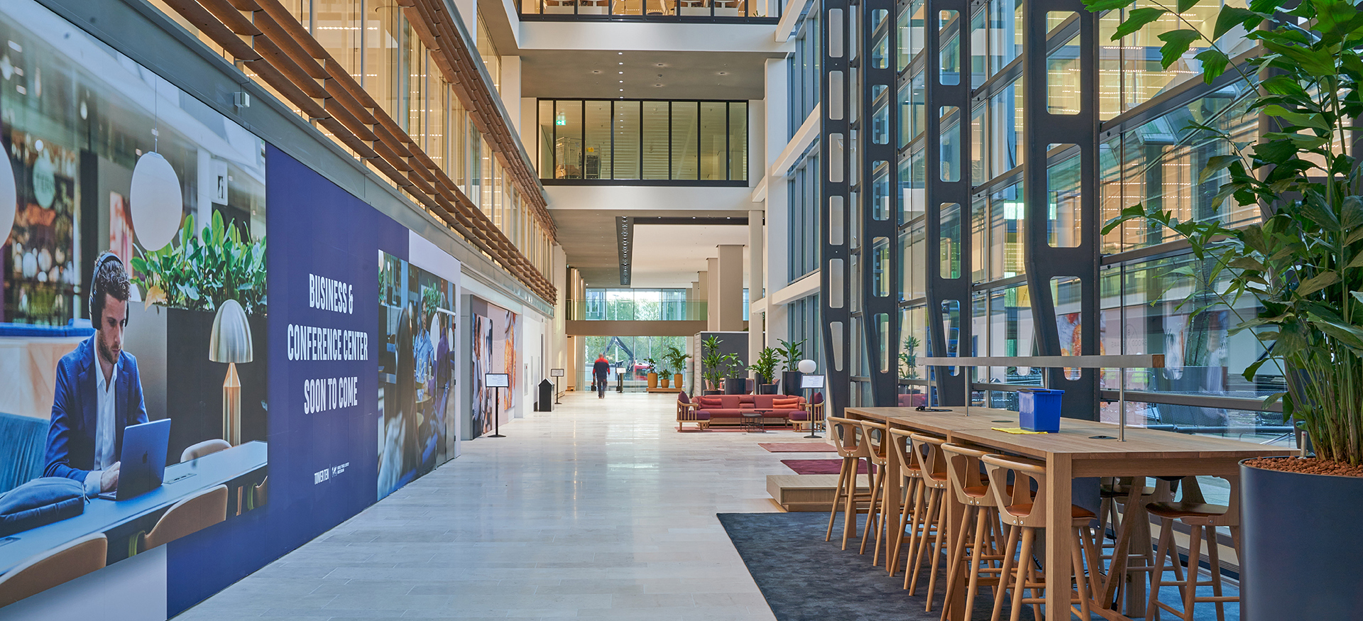 De nieuwe transparante, bijzonder belijnde gevel maakt het WTC weer helemaal van deze tijd. Erachter bevindt zich straks 17.000 m2 volledig gerenoveerde en 32.000 m2 nieuwe vloeroppervlakte. Ook de parkeergarage breidt uit om aan te sluiten op de moderne eisen en behoeften van gebruikers.